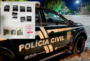 A Polícia Civil do Rio Grande do Sul, por meio da Delegacia de Polícia de Palmeira das Missões (14ª DPRI), confirmou a prisão em flagrante de um agente penitenciário, de 34 anos, na quarta-feira, 12 de novembro. A ação ocorreu após diligências motivadas por uma denúncia anônima detalhada. Policiais civis se dirigiram ao Presídio Estadual de Palmeira das Missões, onde a denúncia foi confirmada. Durante a abordagem, foi localizada na mochila do servidor uma quantidade significativa de substância ilícita, totalizando aproximadamente 770 gramas de maconha. O indivíduo foi imediatamente autuado em flagrante pela prática do crime de tráfico de drogas, conforme o Art. 33 da Lei 11.343/06. Após a formalização dos procedimentos na Delegacia de Polícia, o preso foi recolhido ao Presídio Estadual de Palmeira das Missões, ficando à disposição da Justiça. (14ª DPRI)